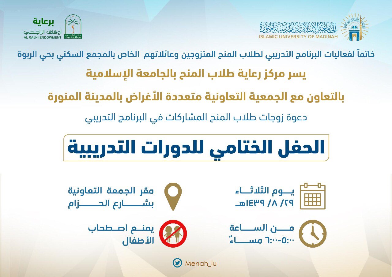 بتوفيق من الله عقدت الجمعية التعاونية متعددة الاغراض لمنسوبي امانة منطقة المدينة المنورة في يوم أمس الأثنين 16 ربيع الأول 1439 هـ الموافق 4 ديسمبر 2017 الحفل الختامي للبرنامج التدريبي التعاوني الأول لتنمية الموارد البشرية لمنسوبي أمانات مناطق المملكة الجمعية