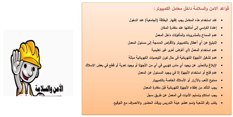 الحاسب الآلي ارشادات السلامة في معمل الحاسب