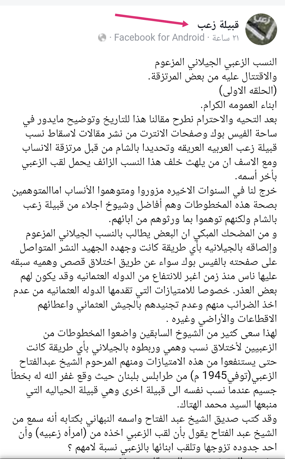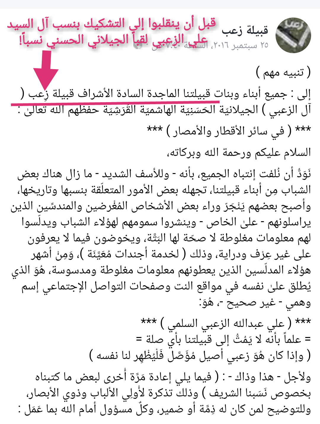 لجنة تحقيق نسب الشيخ عبد القادر الجيلاني الفرق بين الزعبي الجيلاني و الزعبات الثمانية