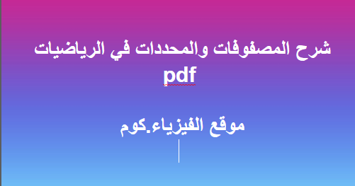 شرح المصفوفات والمحددات في الرياضيات Pdf برابط مباشر Matrices And Determinants