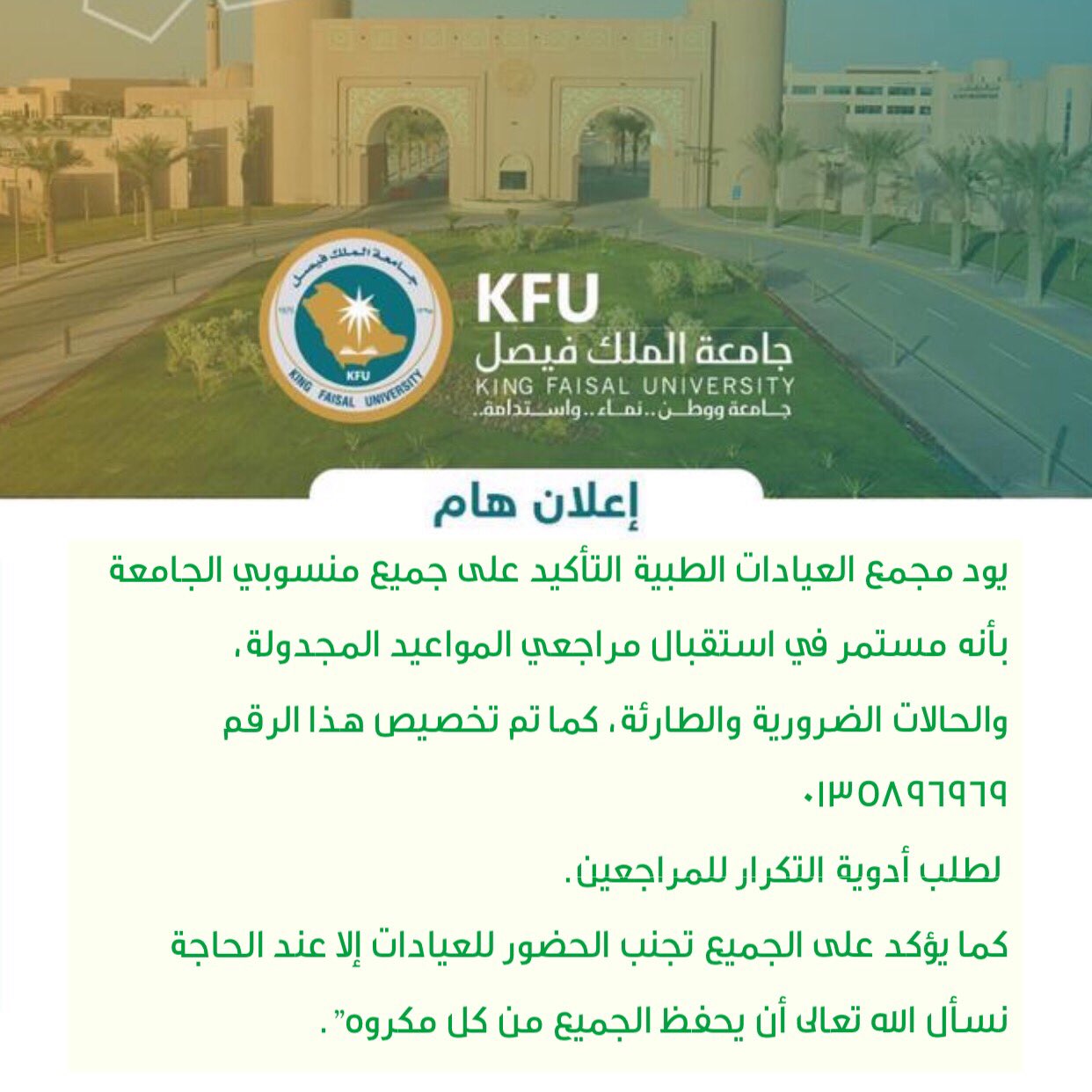 جامعة الملك فيصل On Twitter إعلان هام مجمع العيادات الطبية جامعة الملك فيصل