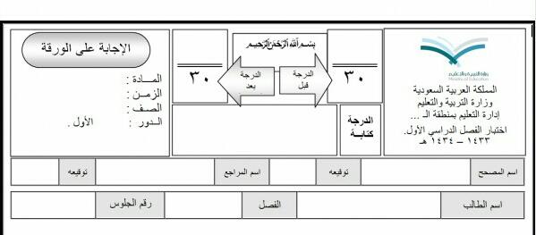 كليشة اختبار نهائي مرحلة ابتدائية المناهج الفصل الأول المناهج السعودية