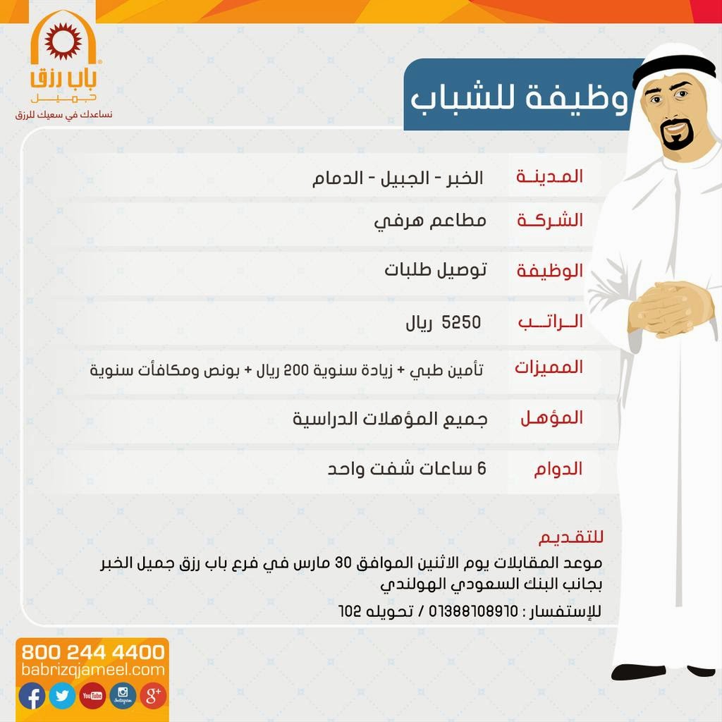 مطاعم هرفي وظائف في الخبر الجبيل الدمام رواتب 5250 ريال