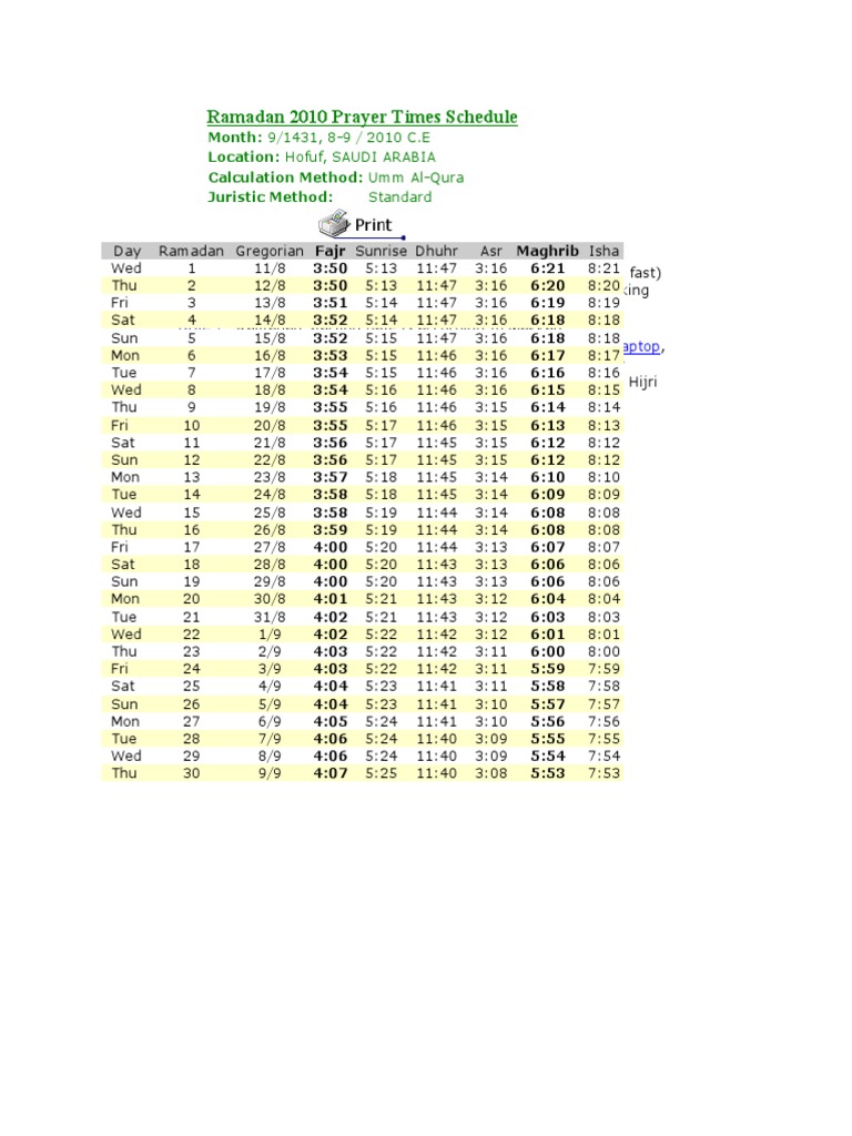 Ramadan 2010 Prayer Times Schedule Semitic Words And Phrases Islamic Behaviour And Experience