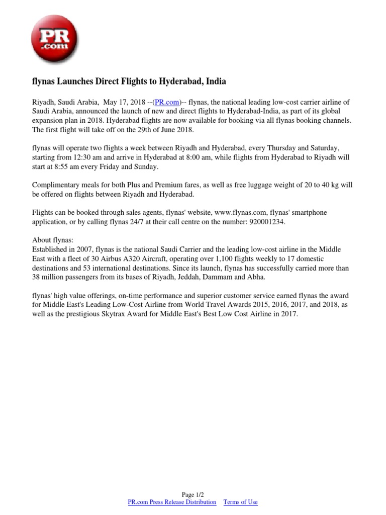 Flynas Launches Direct Flights To Hyderabad India Low Cost Carrier Airlines